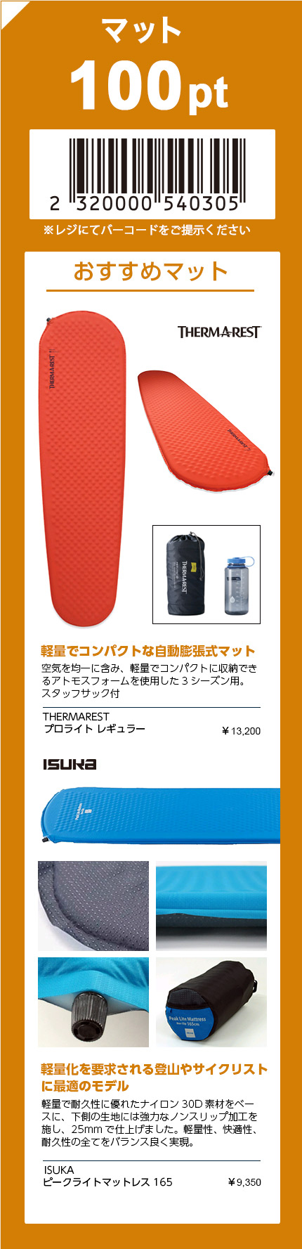 「登山に活躍するアイテム」にご使用いただけるチケットと