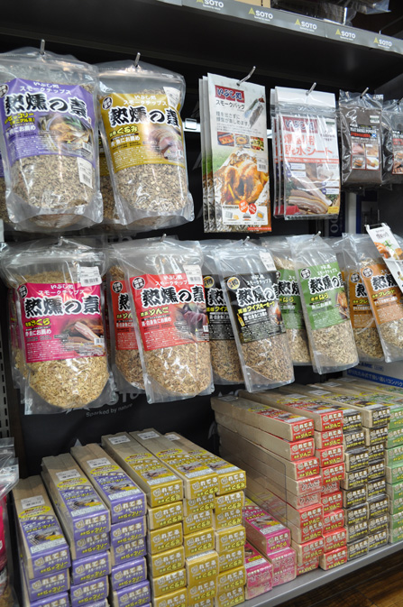 個人的にじっくり見たいコーナーだったので、スモークチップのコーナーを真剣に眺めていると