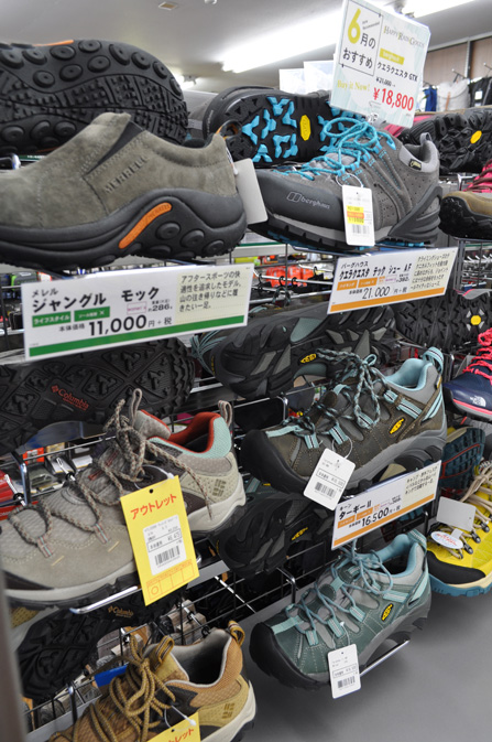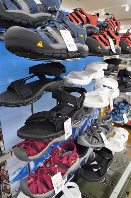 メレル・キーン・コロンビア・ノースフェイスなどのシューズや定番となったテバ・キーンのスポーツサンダルも試し履きできます。