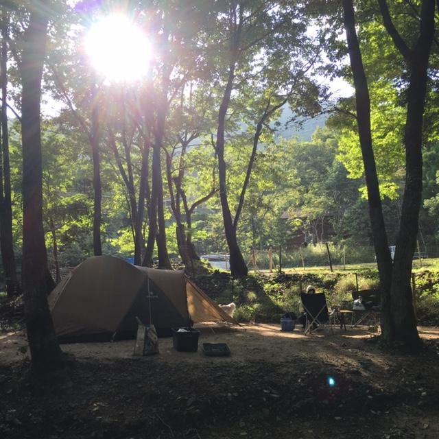 ここのキャンプ場を選んだ決め手は、“ペットノーリードサイト”がある点。