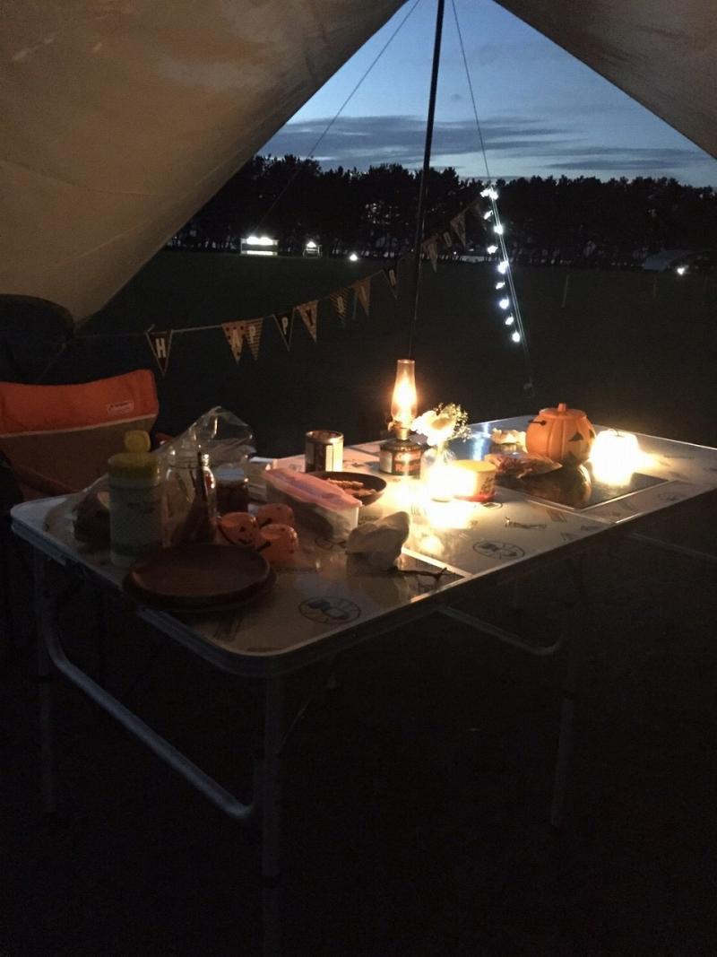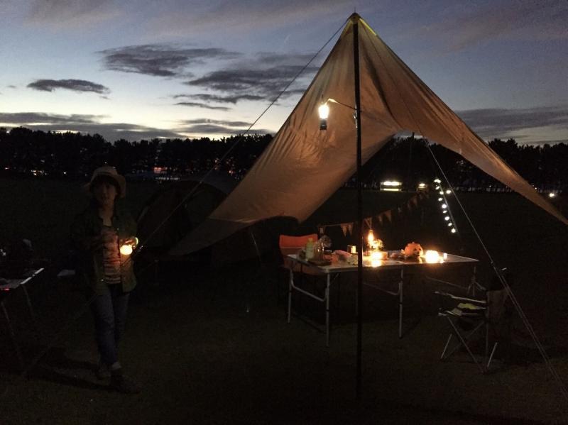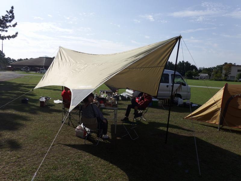 10月中旬とは思えない暑さの中の設営。初めてのギアでの設営はなかなか苦労しました。