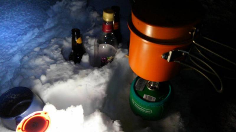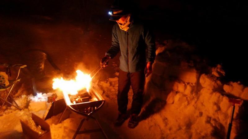 食べ終わる頃には雪がどんどん降ってきて道具も全てすぐ雪にうまります。