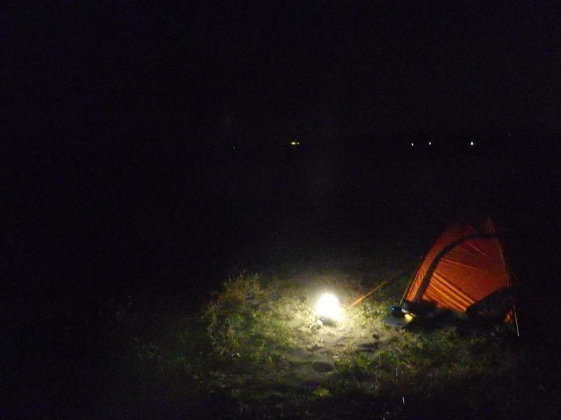 UCOのマドロナ+をまずバックパックから取り出し点灯。(ランタン。LED300lm。充電タイプ)