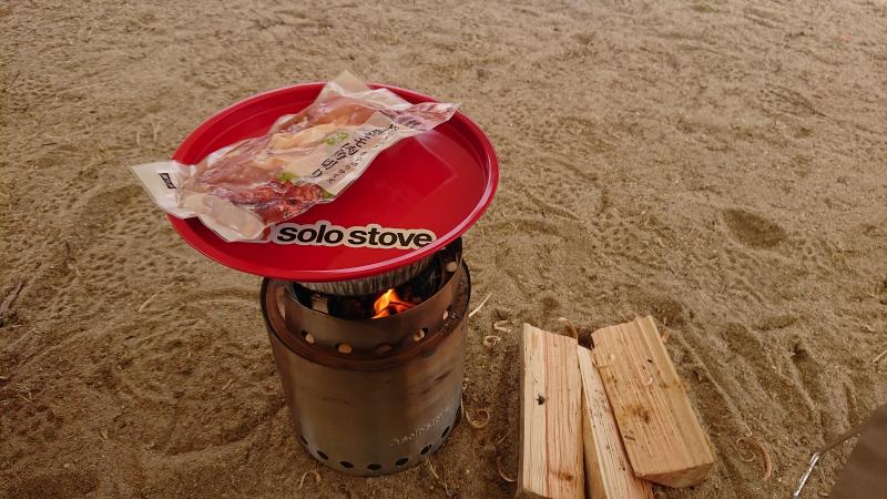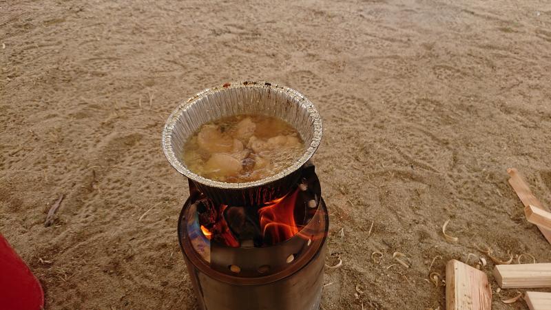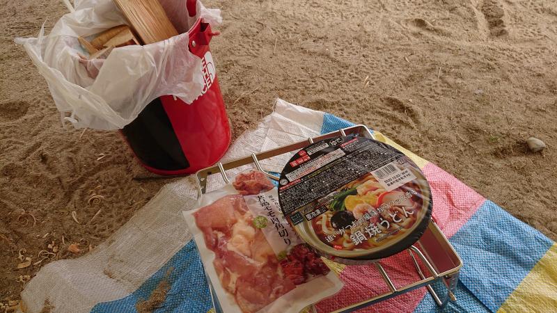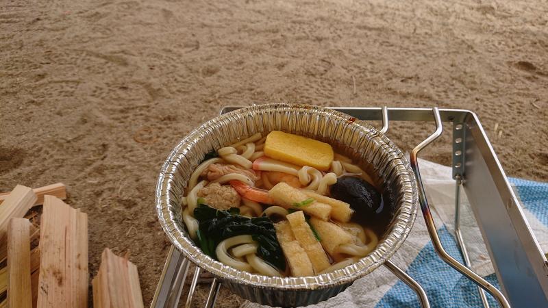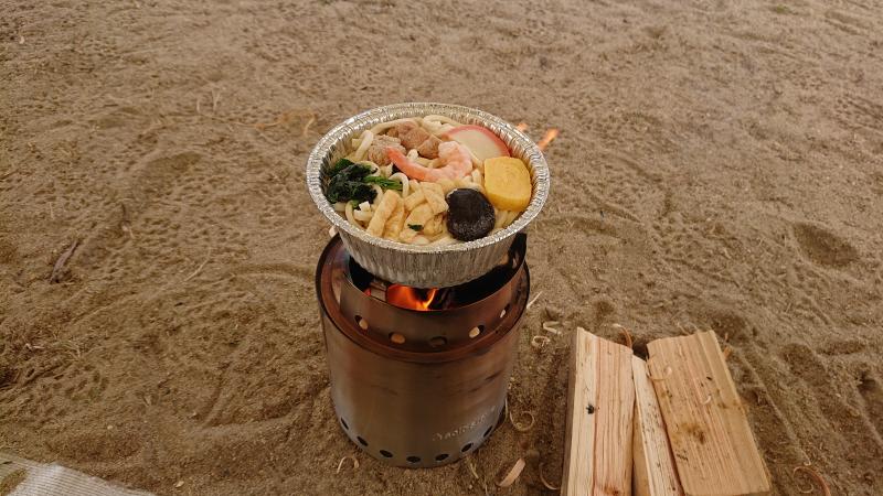 焚火でローソンの冷凍鍋焼きうどん作りました