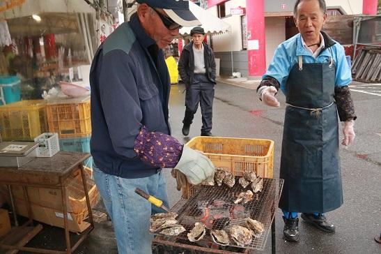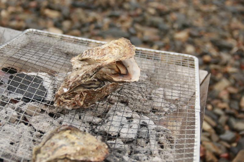 途中の相生の道の駅白龍にて、1K殻付き牡蠣をゲット、プロの叔父様に焼き方伝授していただき、牡蠣までごちそうになり(見本の味)いざキャンプ場に。
