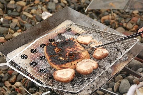 道の駅での購入の厚揚げとシイタケを焼きます。少々焦がしてしまいまいた。がこれもレモンで美味しくいただきました。