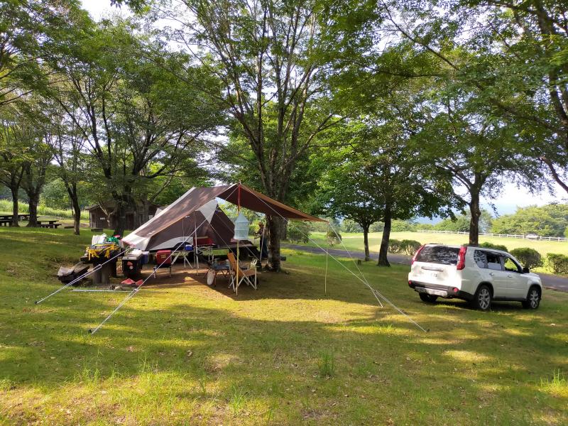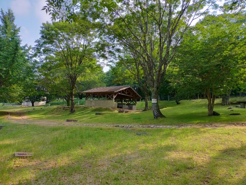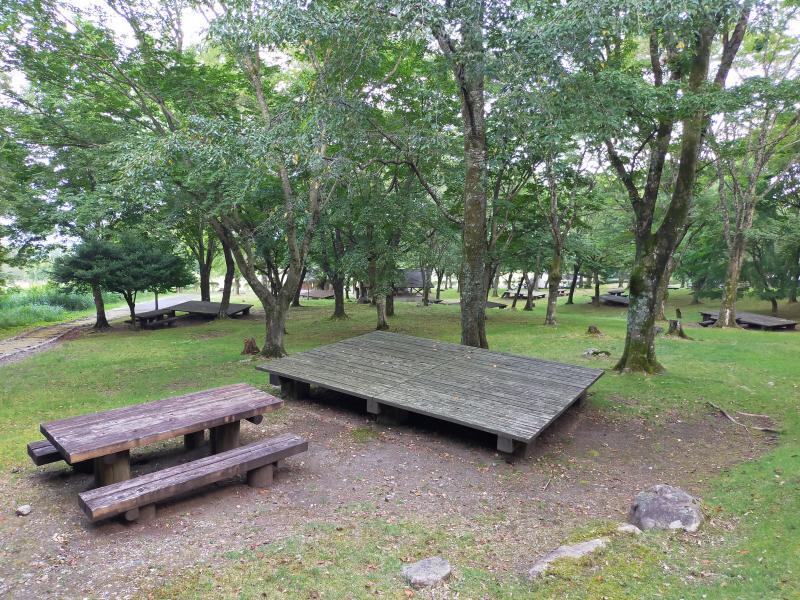 標高700mあり、夏でも少し涼しいです。気に囲まれたテント台のあるエリアと