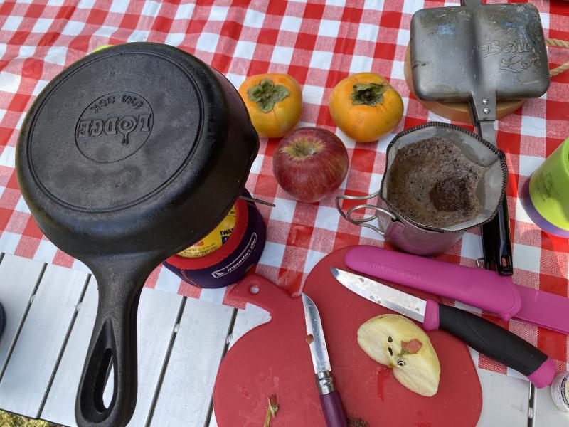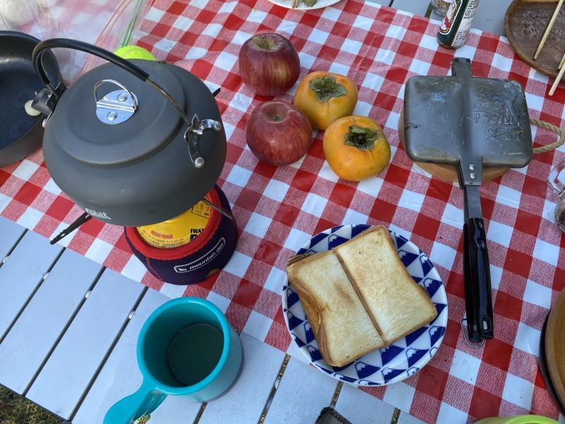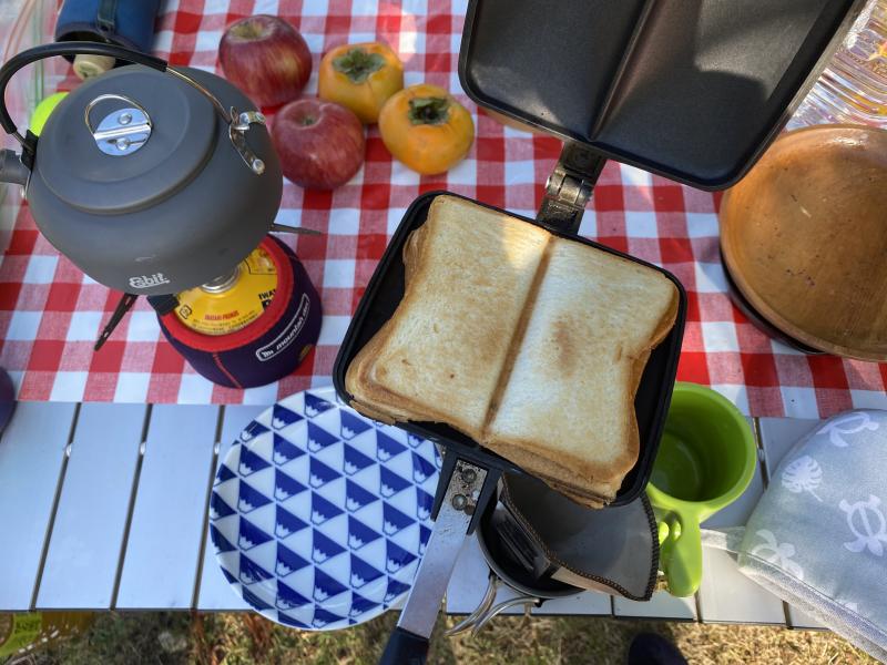 念のため持ってきたホットサンドメーカーで、ホットサンドをつくり、