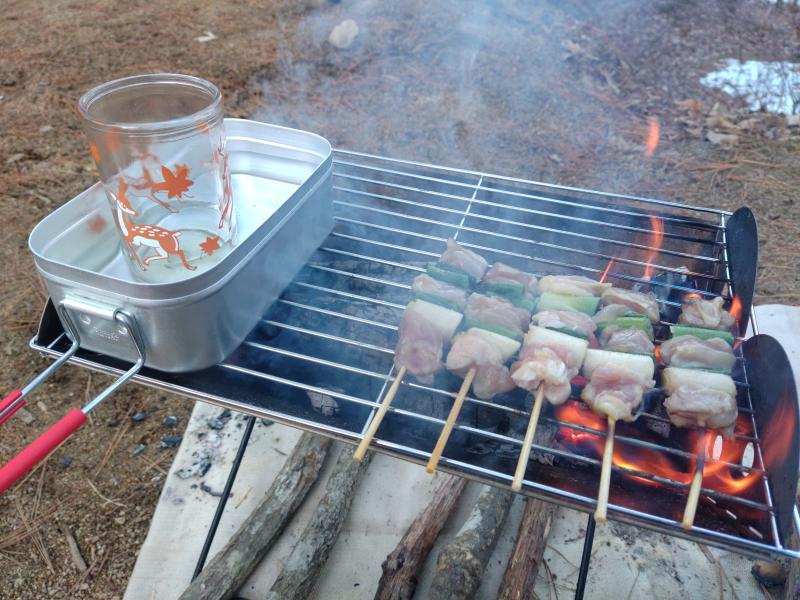焼き鳥も上手く焼け飲み過ぎちゃいます。何より金網がある事によってメスティンなどのクッカーが安定して置ける!これ大事ですね。