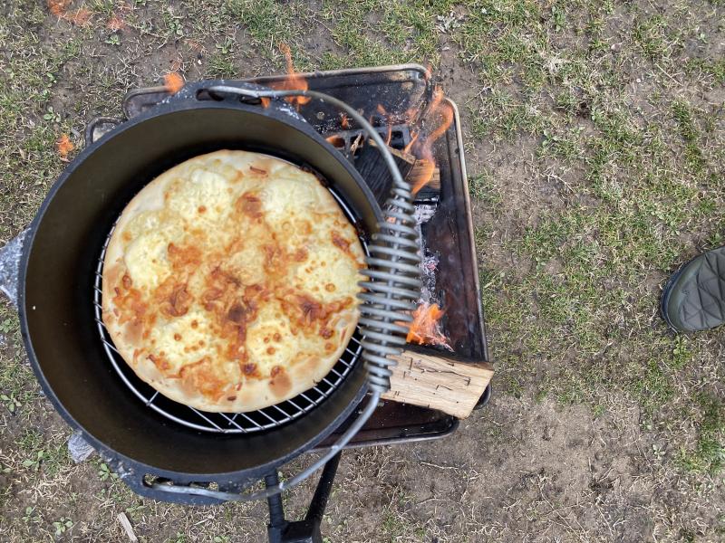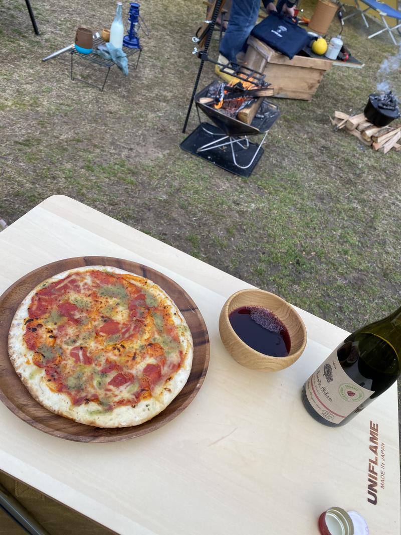 ダッチオーブンでピザを焼いてみたくて2枚おやつに食べました!ワインと☆