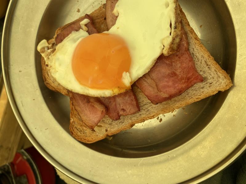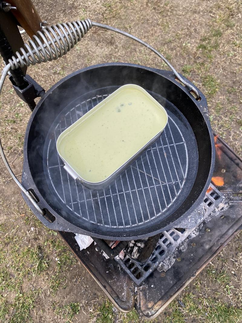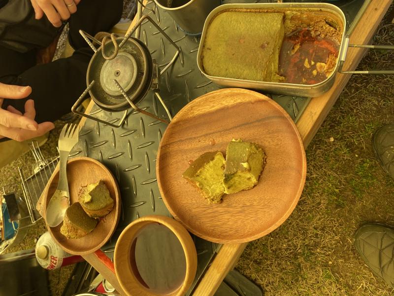 朝ごはんはトーストを食べて、ランタンのお礼に1日目にキャンプ場で作ったメスティン抹茶プリンを食べました。
