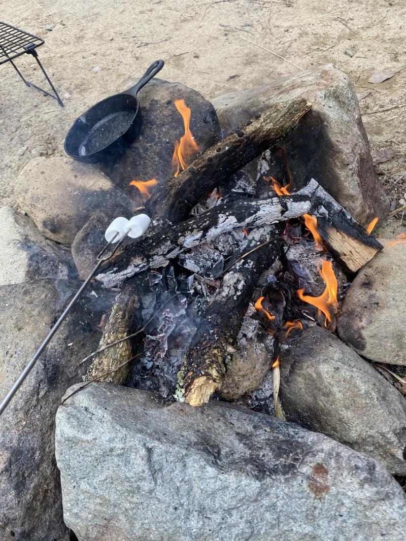 焚き火でお肉がたべたいとの事で、お肉をスキレットでガンガン焼いてきました!
