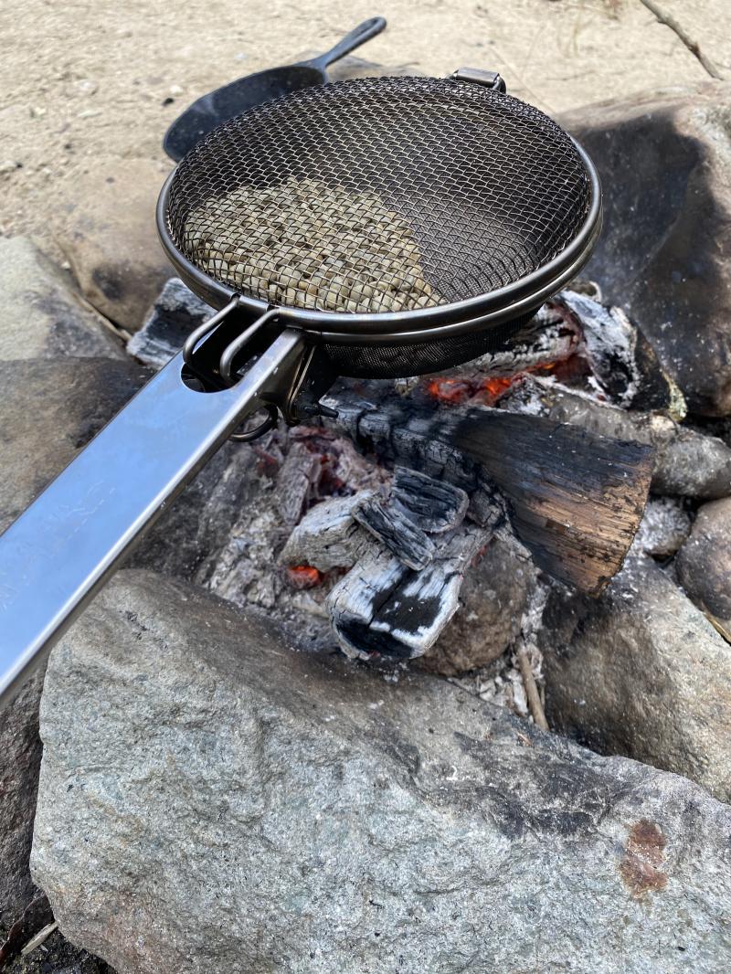 焚き火のまったり時間に簡単に焙煎もできたらと再挑戦したのですが、