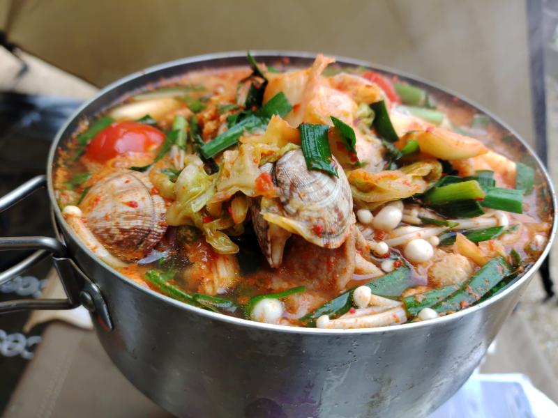 豚肉もアサリもチーカマもぶっこんで超おいしー。体も温まって夜景も見て。すぐに寝ちゃいました。