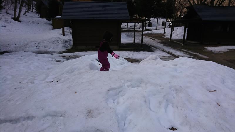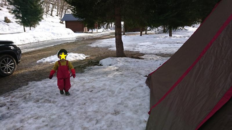 サイトは圧雪され雪が残っていました。