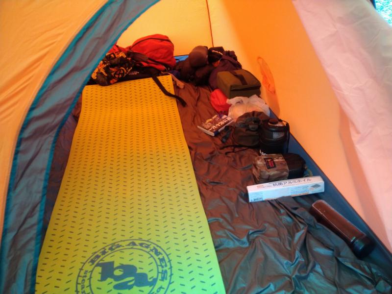 雨の中設営かぁ…と想定はしていたものの ちょっとうんざり。