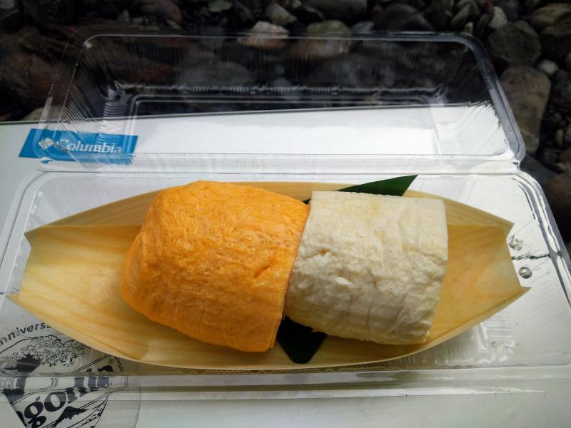 100均メスティンの炊けたご飯を移して焼肉をのせて翌日の登山のお昼のお弁当に。