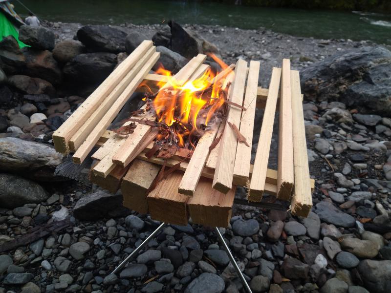 約490gと軽量のメッシュ型焚火台でとても燃焼効率が良く薪はほとんど灰になります。