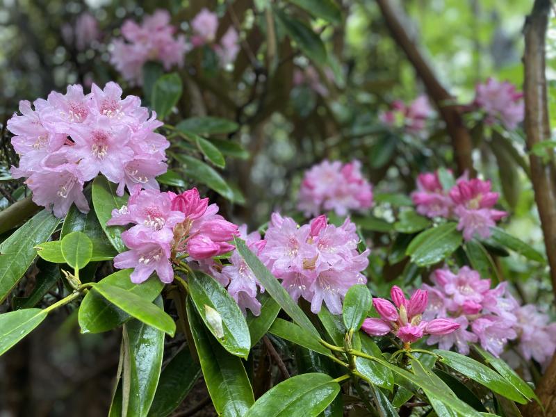 この時は石楠花が咲いていて、5月に入るとヒメシャガが咲き乱れます。