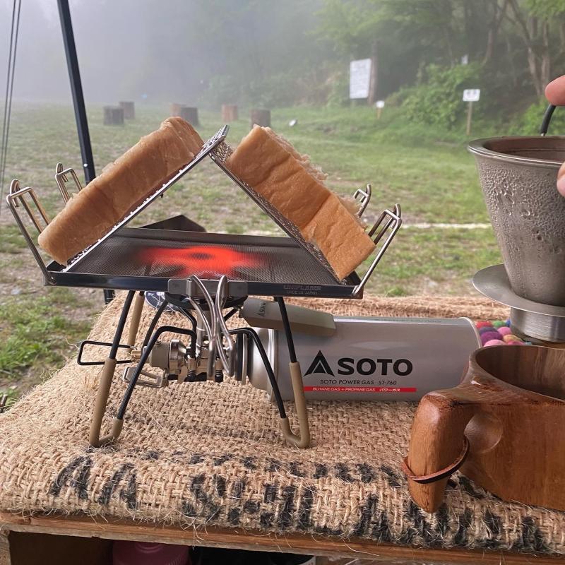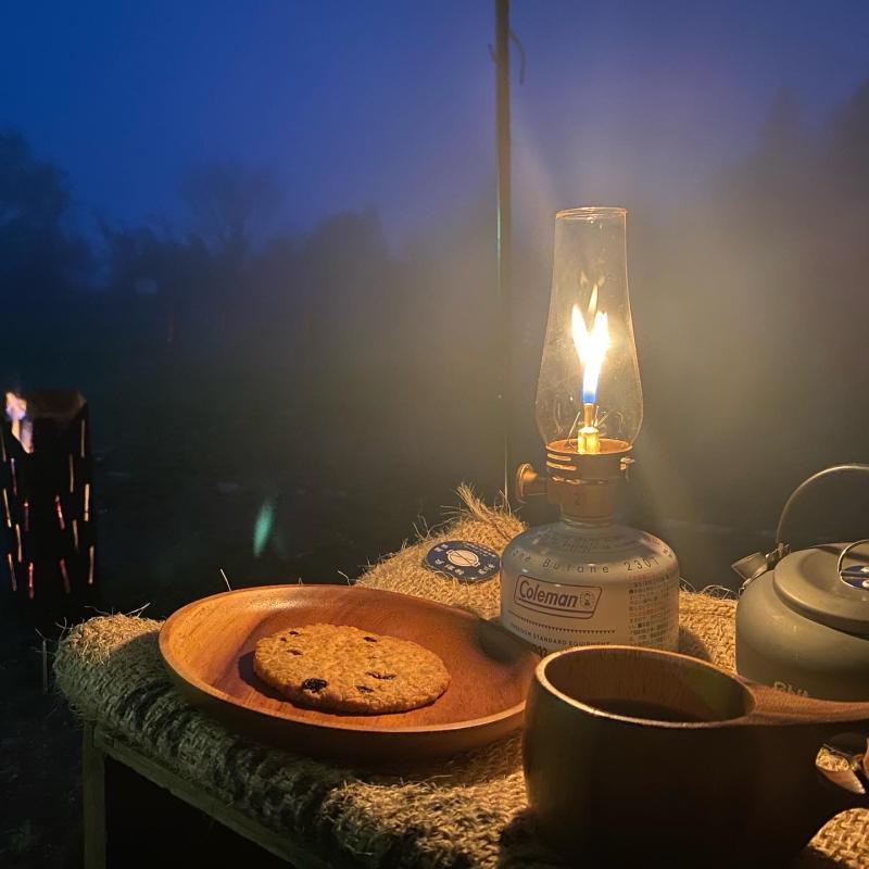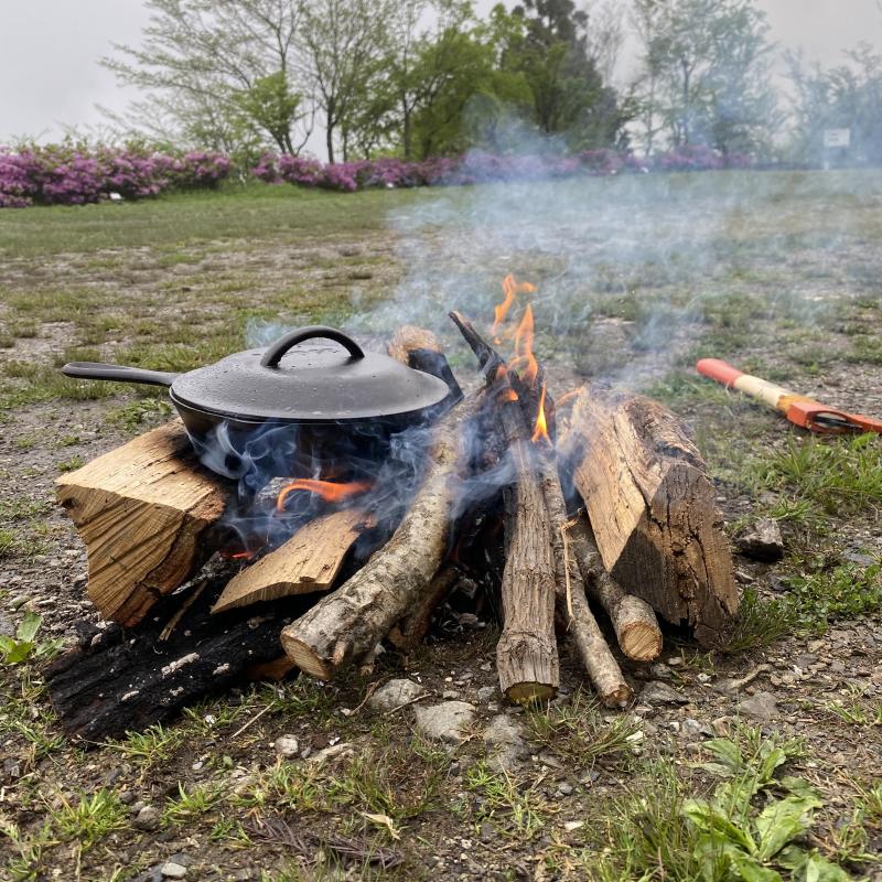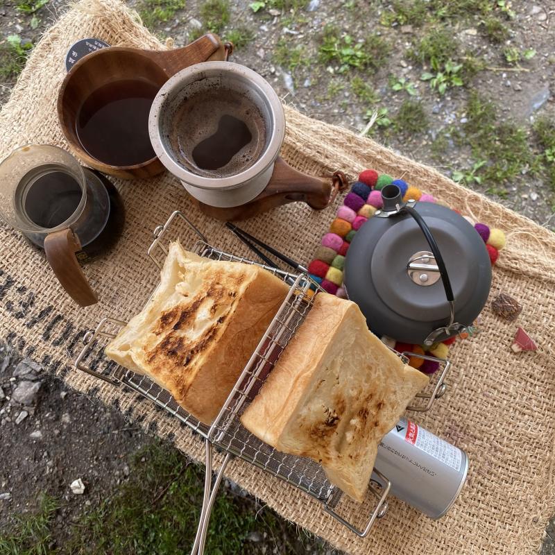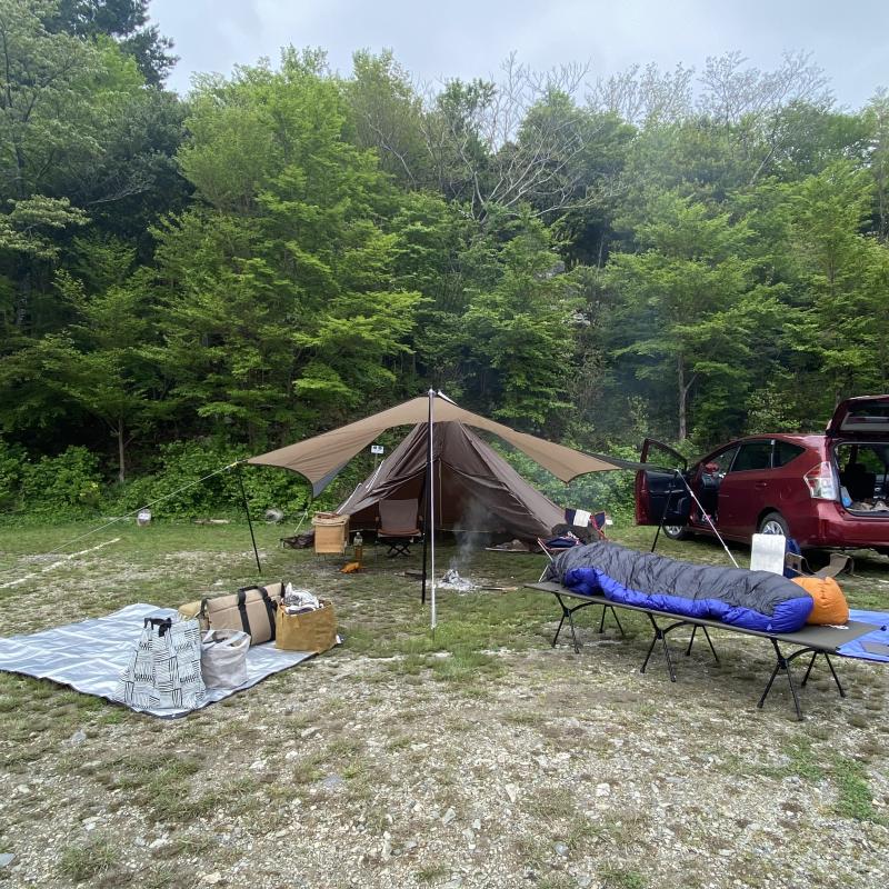 霧雨でしたので焚き火(直火OK)がタープから離れてできたのも良かったです。