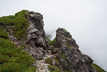 深田久弥の日本百名山、北アルプスの笠ヶ岳は登山口である新穂高温泉から急登が続くどっしりとした山です。笠ヶ岳稜線には門のような岩があります。 登山道はその岩に間を抜けるようにつけられていて、良いランドマークとなっています。この岩の名前は(【三択】1.蛙岩 2.抜け戸岩 3.天の岩戸)といいます。