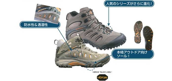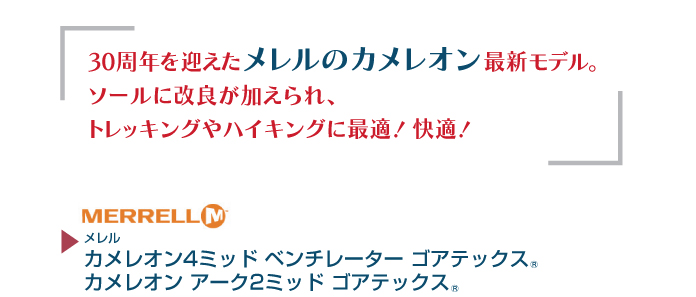 ゴアテックス®を搭載し、高い防水性を備えたカメレオンは、ピッグスエードレザーとメッシュ素材の組合せで、透湿性にも優れています。