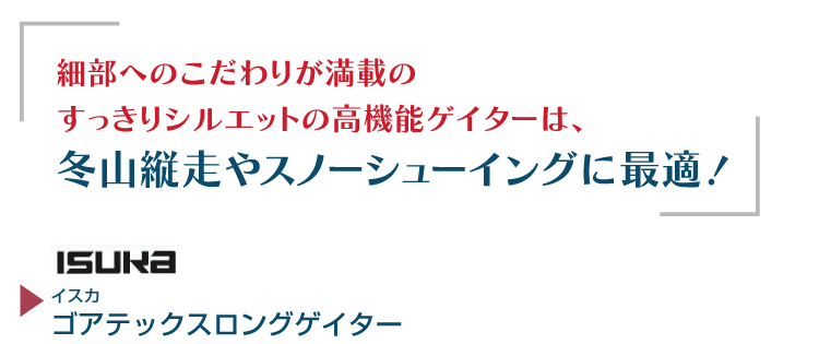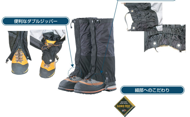 スパッツの内側にはスノーガードが装着されているので、冷たい雪の侵入を防いでくれます。さらに雪が入りにくいように、二重構造になっています。