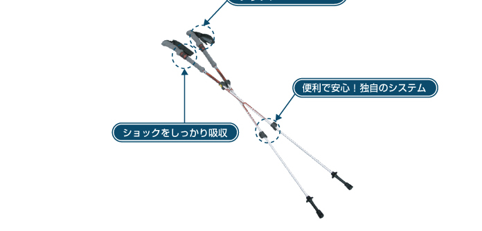 レバーを指で開くだけで、シャフトの長さを調節できるブラックダイヤモンド独自のシステム。レバーを閉じれば、シャフトはしっかりロックされるので安心です。
