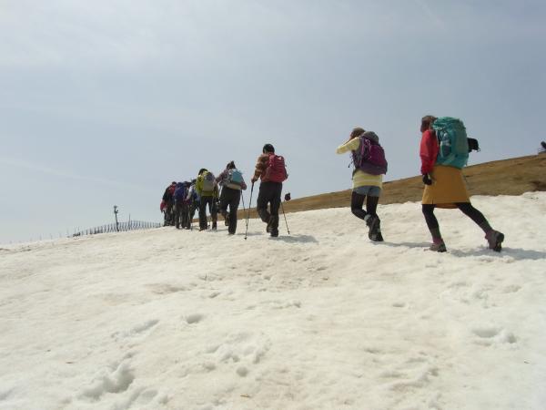所々に雪が残っていましたがアイゼンが必要な程ではなく、青空とのコントラストで景色に花を添えていました。