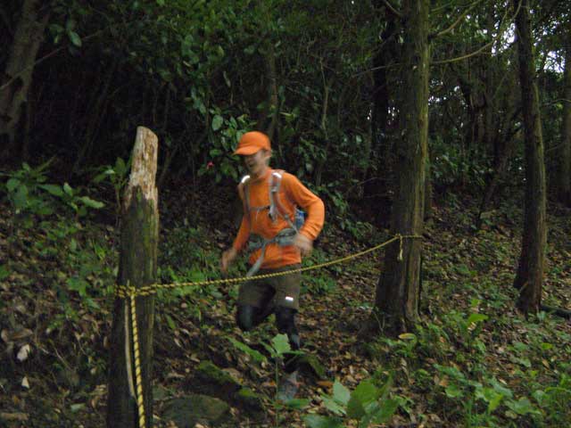 - 登山口から少し舗装路。ロープなどで登山道は整備されている。道は一本道で迷わない。