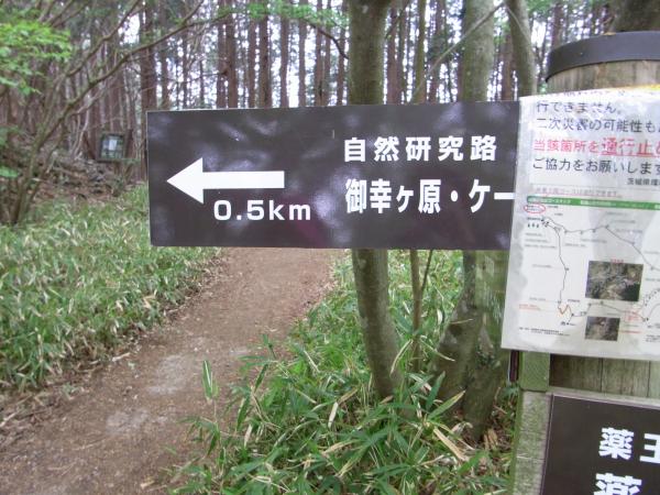 途中に自然研究路との分岐がありますが、今は落石のため一部通行禁止になっています。