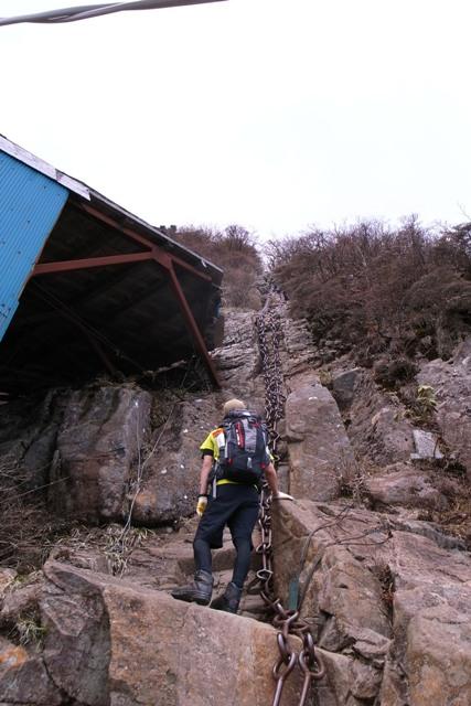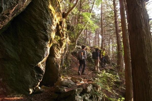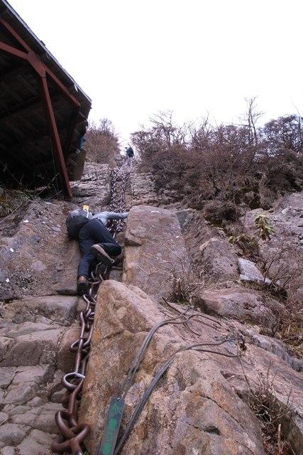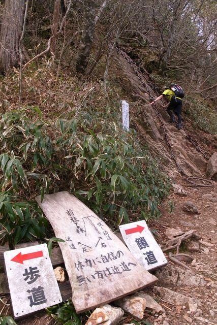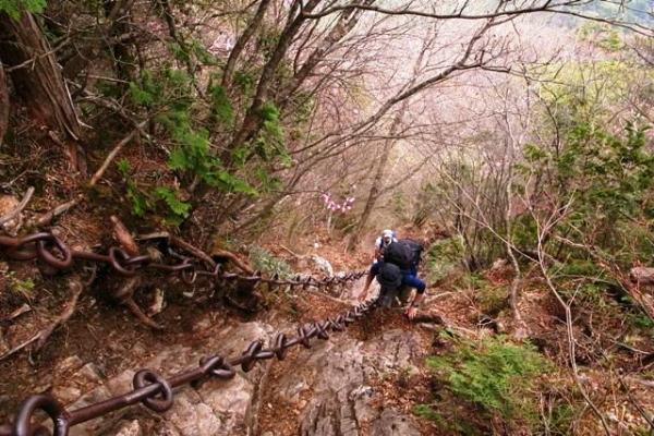 - ロープウェイ間の道は分岐点がたくさんありますが、細かく道標があるので迷う心配はありません。その先はほとんど階段です。鎖場はぬかるんでいるところもあるので滑らないように注意してください。