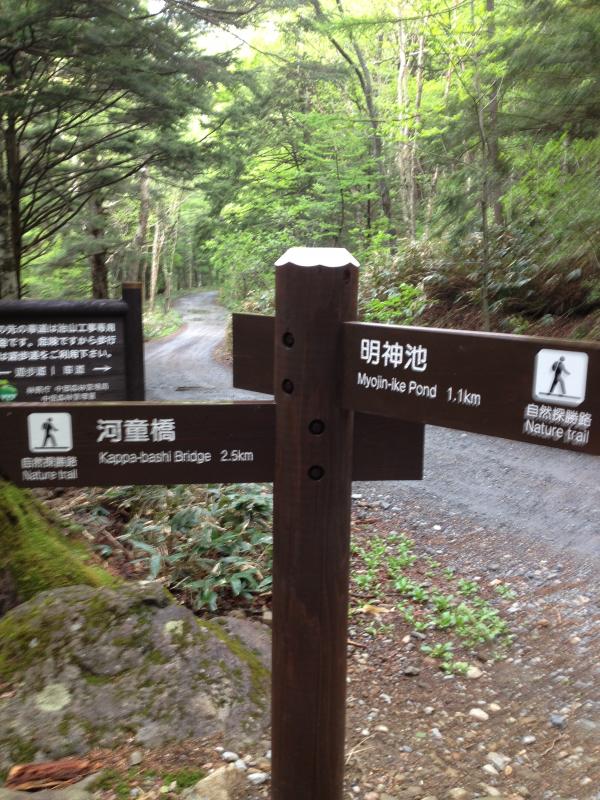 - 初日: 上高地バスターミナル=60分=大正池=60分=ウエストン碑=20分=河童橋=5分=上高地バスターミナル