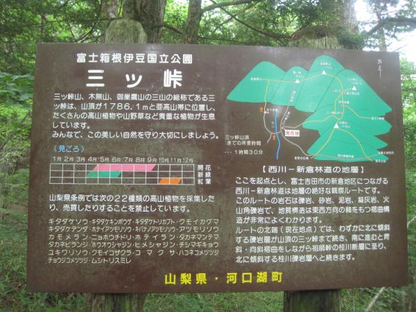 - 金ヶ窪沢近くの三ツ峠登山口→(60分)→三ツ峠山荘→(10分)→屏風岩→(90分)→達磨石近くの三ツ峠登山口→(30分)→グリーンプラザ
