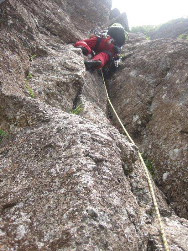 今回は初心者向けの中央カンテを登りました。第1バンドまでも念のためザイルを出して登りました。第1バンドから3Pで登れます。私は1P目と3P目をリードしました(つるべ)。2P目の登り出し、セカンドにもかかわらず幅の広いクラックで苦戦して結局A0!次は頑張ります。