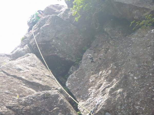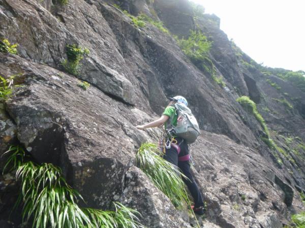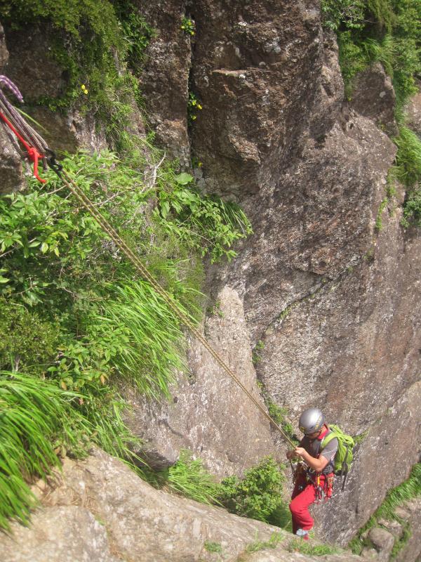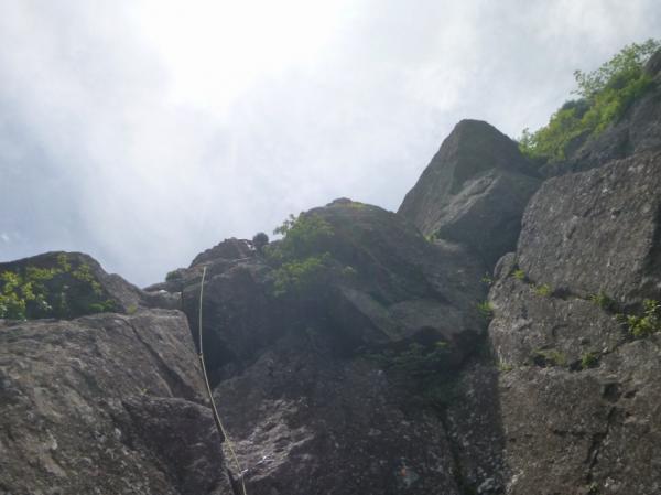 50mザイルで2回に分けて懸垂で下りましたが、第1バンドまであと少しのところで2本目で長さが足りず、スリングをつないで何とかクライムダウンしました。登り返すほどではなかったので良かったです。