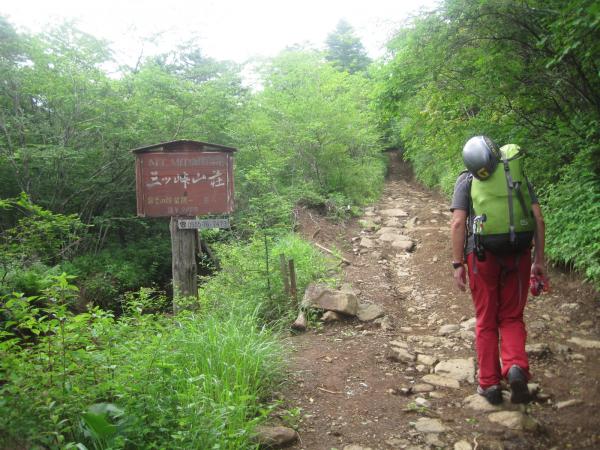 - 登山口から三ツ峠山荘までは車が入れるほど幅広い道。小屋関係者の車両が通るので注意してください。