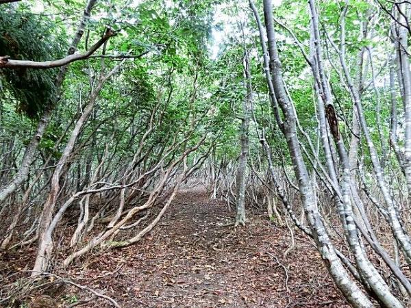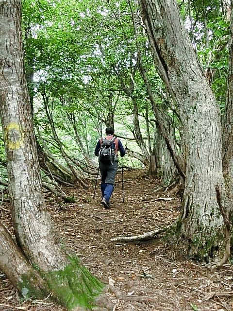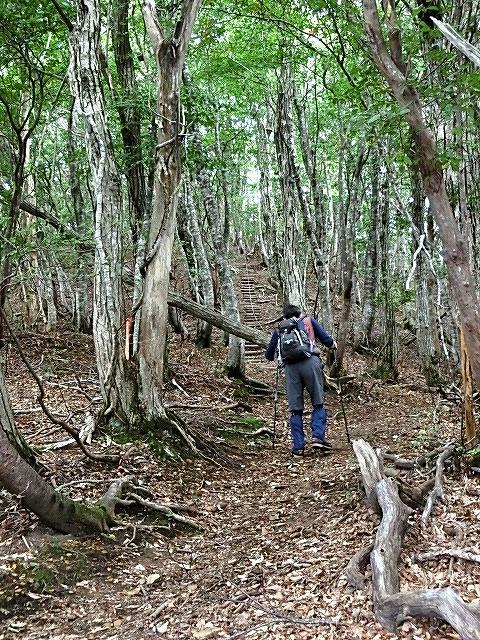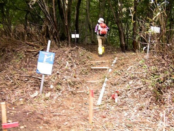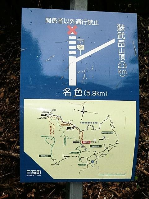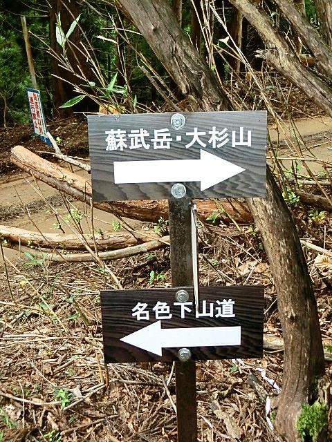 - 備前山と登山口のあたりで工事が行われており作業車両の脇を通行せざるを得なかった。登山口まではくねくねの林道でところどころ舗装路で足が疲れる。登山口を過ぎてからやっと山らしくなります。あとでペンションのご主人に聞いたところ、今は万場の天神社を入山口として大杉山へ登るルートが主でそこから蘇武岳に登り万場に下山するのがおススメということです。
