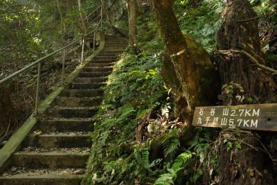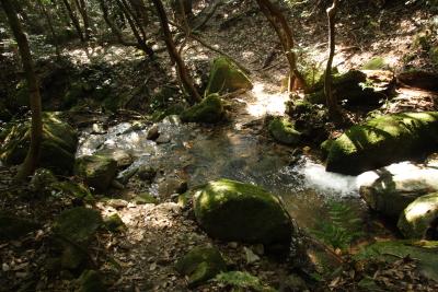 - 立石バス停(30)-御手洗キャンプ場(10)-御手洗の滝(40)-林道出会い(30)-石谷山(90)-御手洗キャンプ場(20)-雲野尾峠(15)-御手洗キャンプ