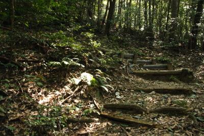 - 山頂付近に急登があるので少しツラいですが、他は木漏れ日の中を気持ちよく歩けるゆるやかな道です。沢沿いを歩いていくので何度か渡渉していきます。飛び石を越えていくので滑らないように気を付ける必要があります。