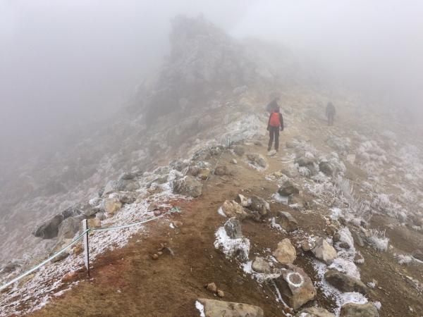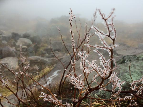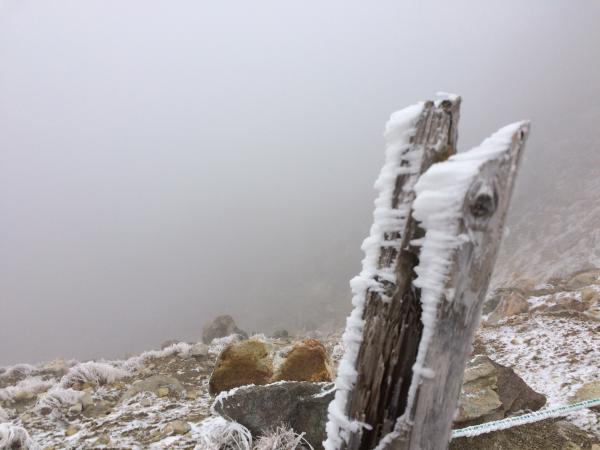 登山口の時点で気温0℃で山頂付近は-4℃。
