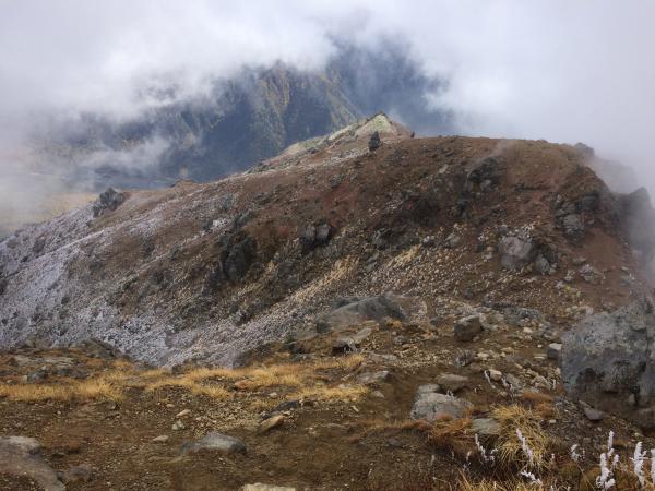 山頂からの大展望を期待しておりましたが、数十分待ってもガスが抜けず