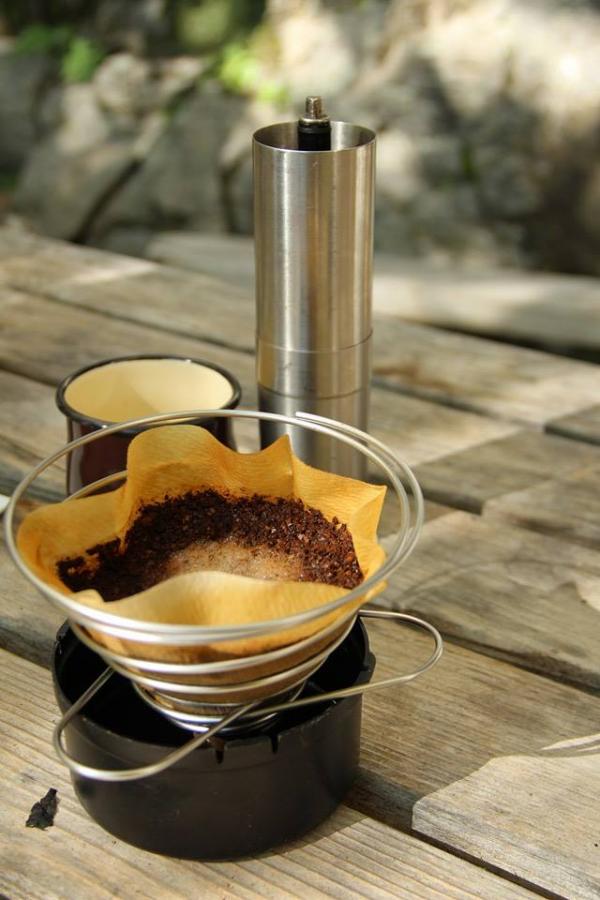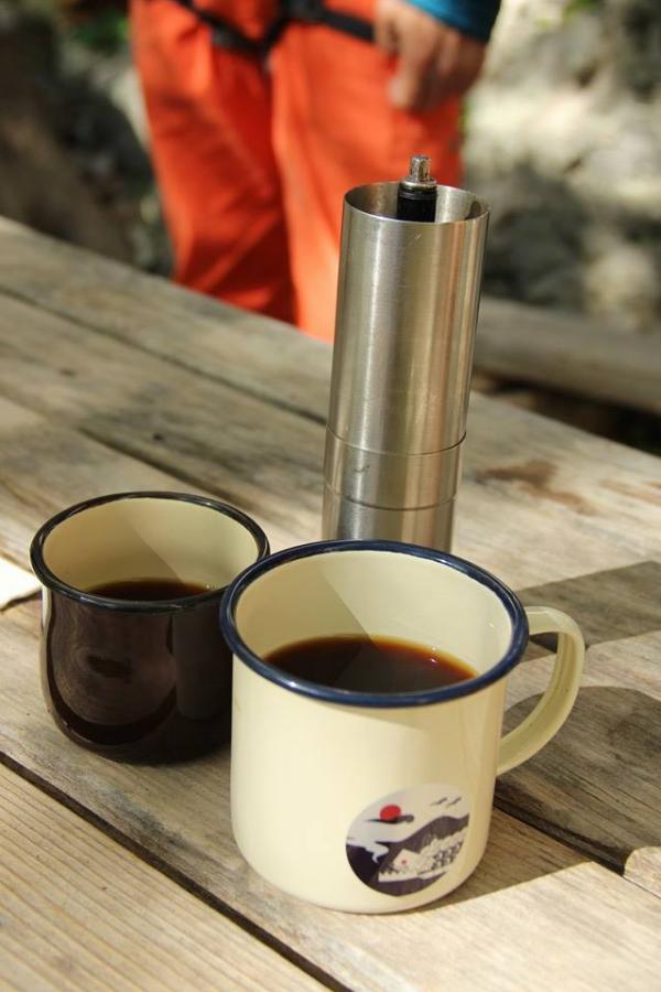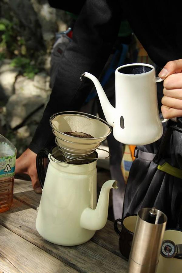 途中の休憩時間に、友達より、ドリップコーヒーがふるまわれました。温度計、ドリップ専用のホーローヤカン、挽きたてのコーヒーは格別でした。