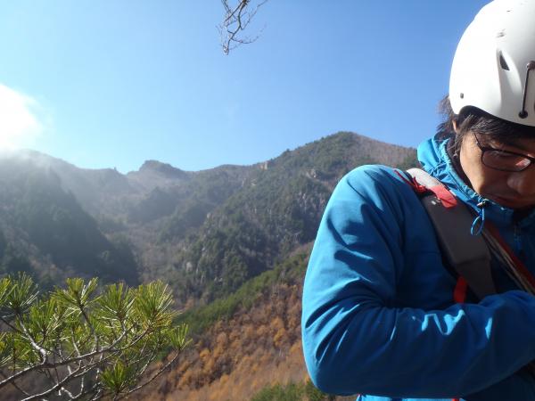 朝、ガスがとれずとても寒かったです。間違ってソラマメスラブ周辺の岩を登ってしまい。セレクションの取りつきに着くころにはガスもとれ、体もほぐれてました。