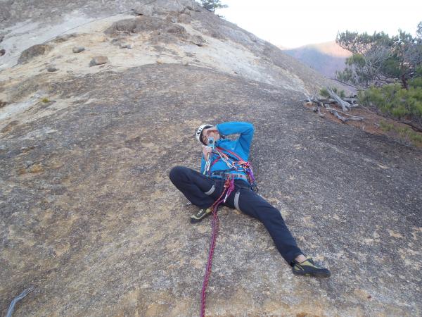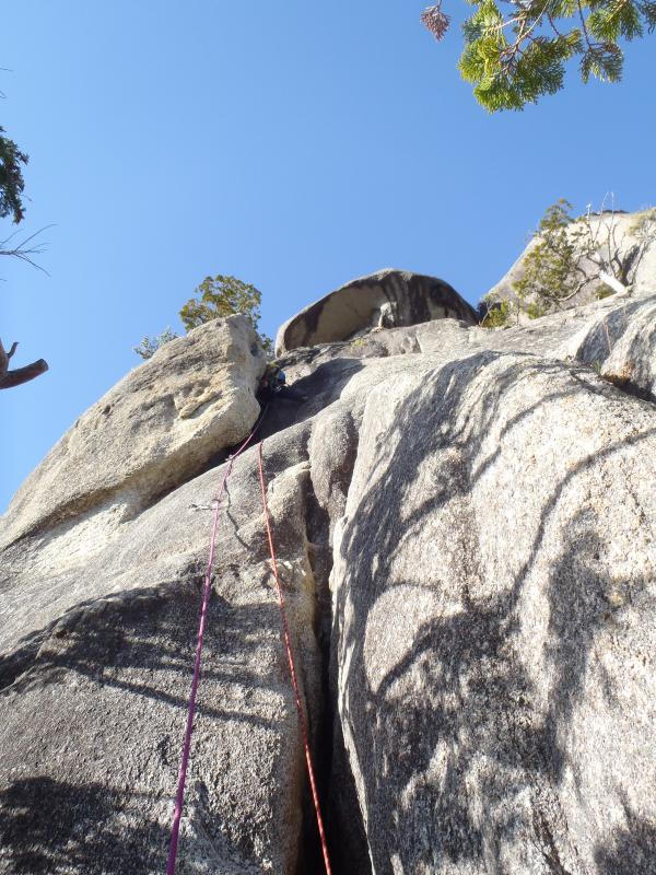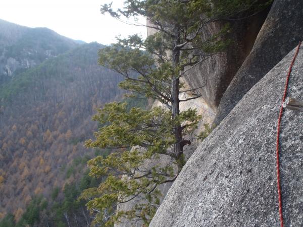 時間もタイトだったので、赤羽さんに1P、2P登ってもらい。だいぶ時間の短縮につながりました。3P目は快適なチムニー、4P目はクラック沿いを上がっていきます。5P目はオリジナルルートは直登ですが今回はトラバースを選択しました。高度感満載のトラバース、しびれました。
