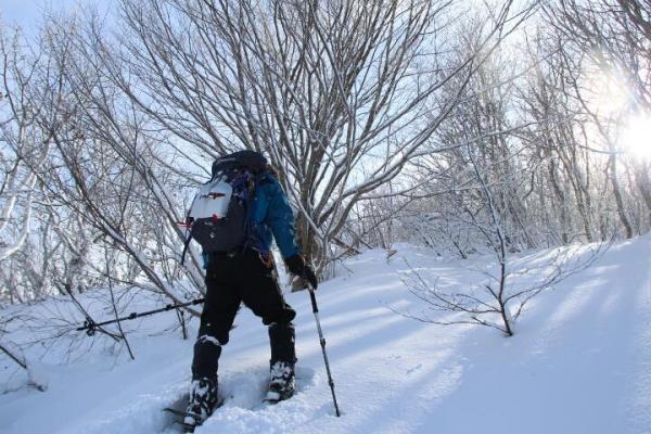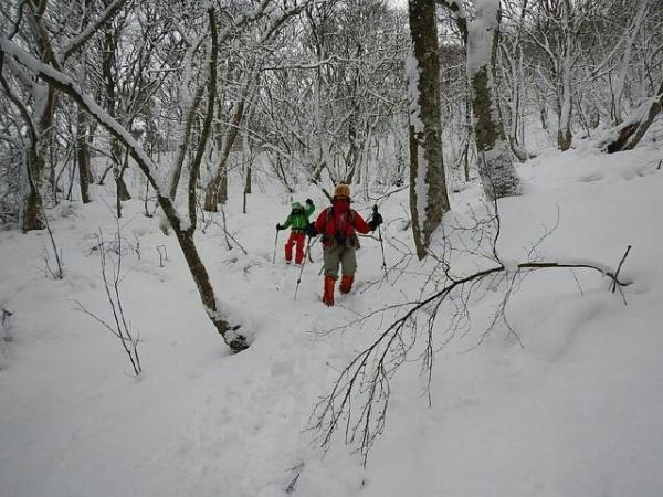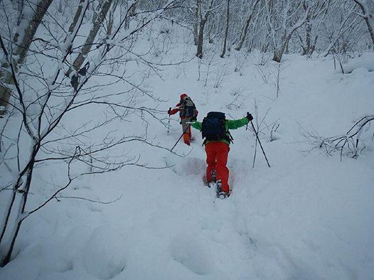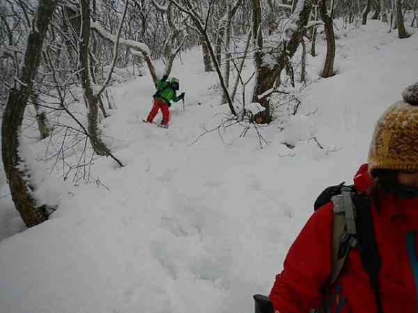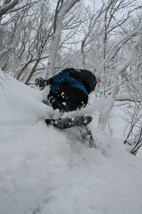 かなりのラッセル大会でした。MSRのスノーシューだからこそ、この登りものぼれるのかも・・・。途中西村氏に代わっていだだき