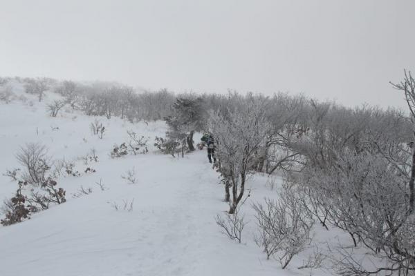 稜線は風速15Mはありそうな強風。マイナス10度くらいと思われますが