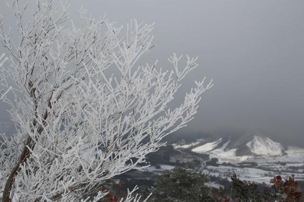 高梁SAでは全くの無雪にもかかわらず、蒜山にはいると雪景色。