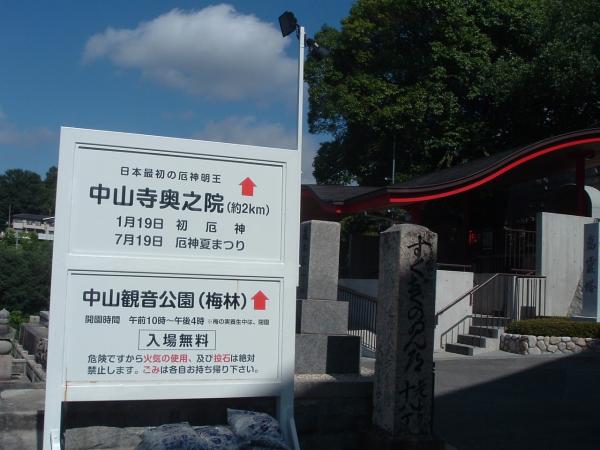 - 阪急宝塚線中山駅(3分)中山寺(1時間15分)山頂(25分)奥の院(20分)清荒神(20分)阪急宝塚線清荒神駅