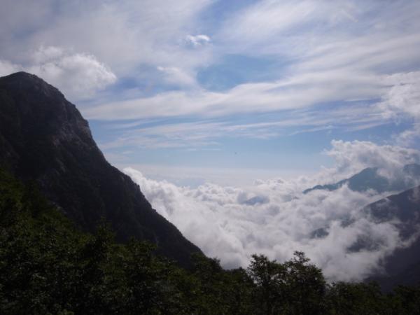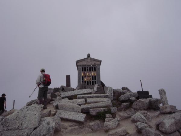 この日はテント場を遅めの6時に出発し、頂上に11時についた頃には雲が昇ってきガスってしまいました。
